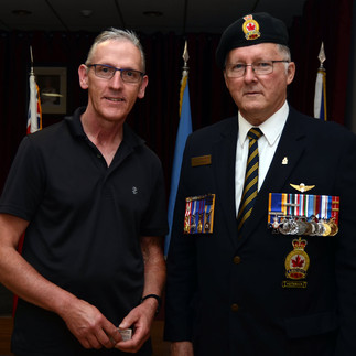 Congratulations to Comrade Norm Marion (right), who was presented the Branch Legionnaire of the Year award by Branch President Wayne Tutt. Over the past three years Comrade Norm has selflessly offered his time, knowledge and experience for the betterment of the Branch, its members and the Coldwater community. Although the Legionnaire of the Year Award is an annual honour, in this particular case we wish to recognize the multi-year efforts Norm has put in as Branch President to guide and to keep the branch alive and well through the troublesome period of the pandemic. Throughout the period, Norm also continued to accomplish the tasks of Public Relations Officer, Branch Historian, Chair of the Honours & Awards Committee, Editor of The Maple Leaf newsletter, and administrator of the Branch Website and Facebook pages. For those reasons, we are pleased to award Norm Marion the 2021 Legionnaire of the Year Award.